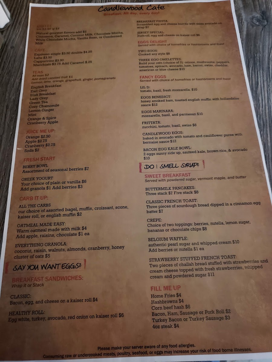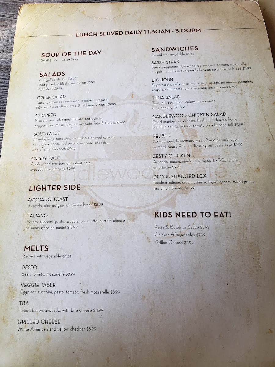 Candlewood Cafe Menu